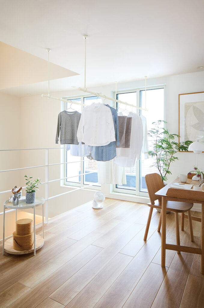 ランドリールームはもちろん、リビングやダイニングなど、人目につきやすい空間での室内物干しにも適しています。 デザイン性と使い勝手が評価され、2025年度のグッドデザイン賞も受賞しており、「おしゃれに部屋干ししたい」という方にとって心強い選択肢です。