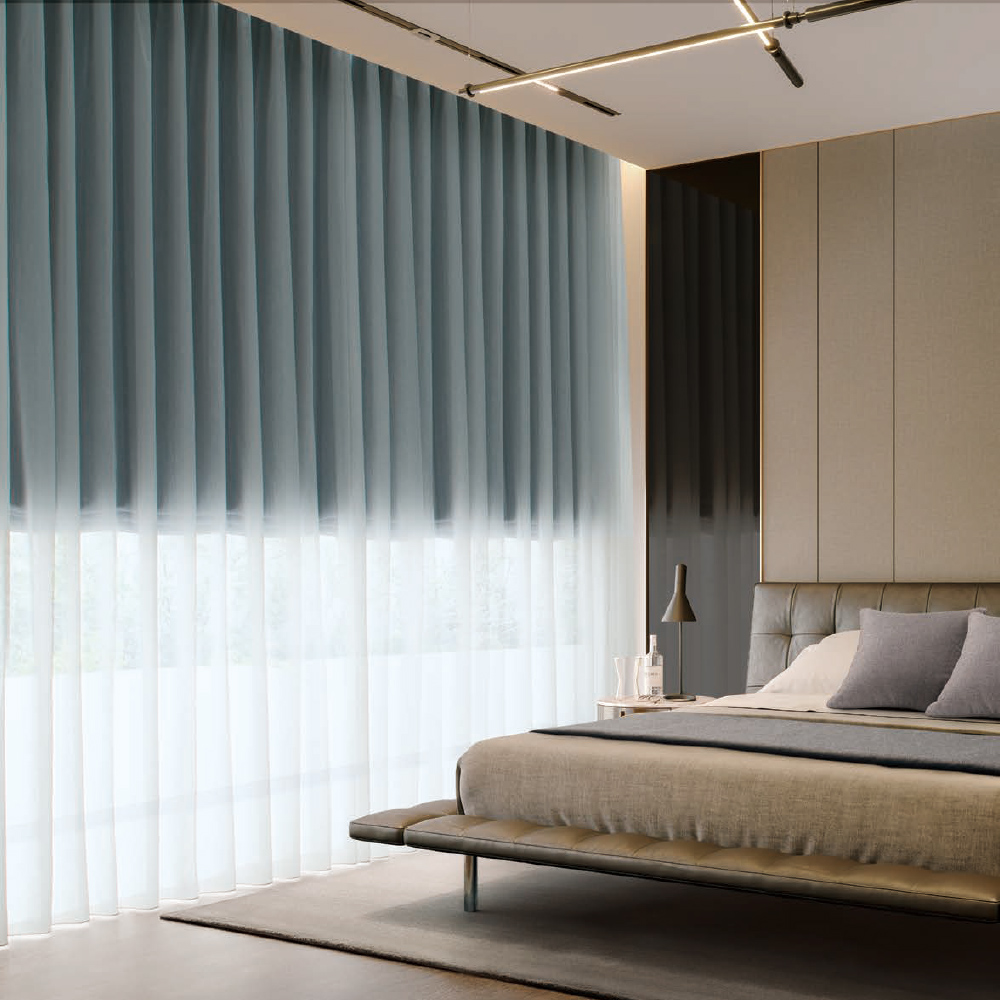 必要に応じて、手前に夜だけ厚地カーテンを足すこともできます。
