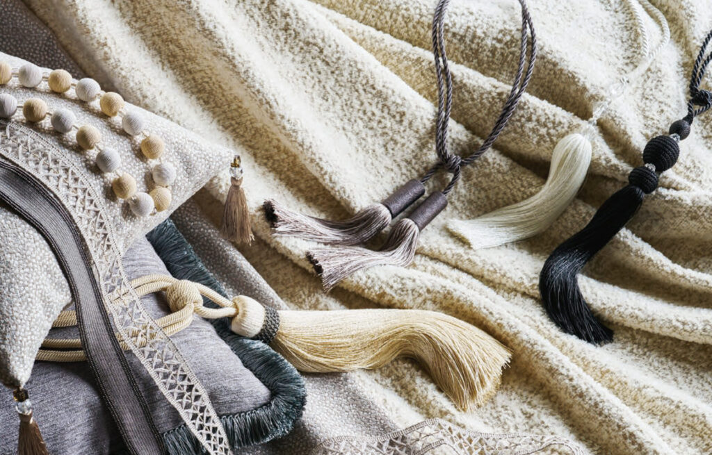 タッセルにはドレープカーテンと共生地のものや、房飾りタイプなど様々な種類があります。共生地タイプは統一感がある一方、装飾タッセルはアクセントとなり空間に彩りを与えます。ふさかけの位置決めでも、タッセルの長さやボリュームに注意すると仕上がりが美しくなります。