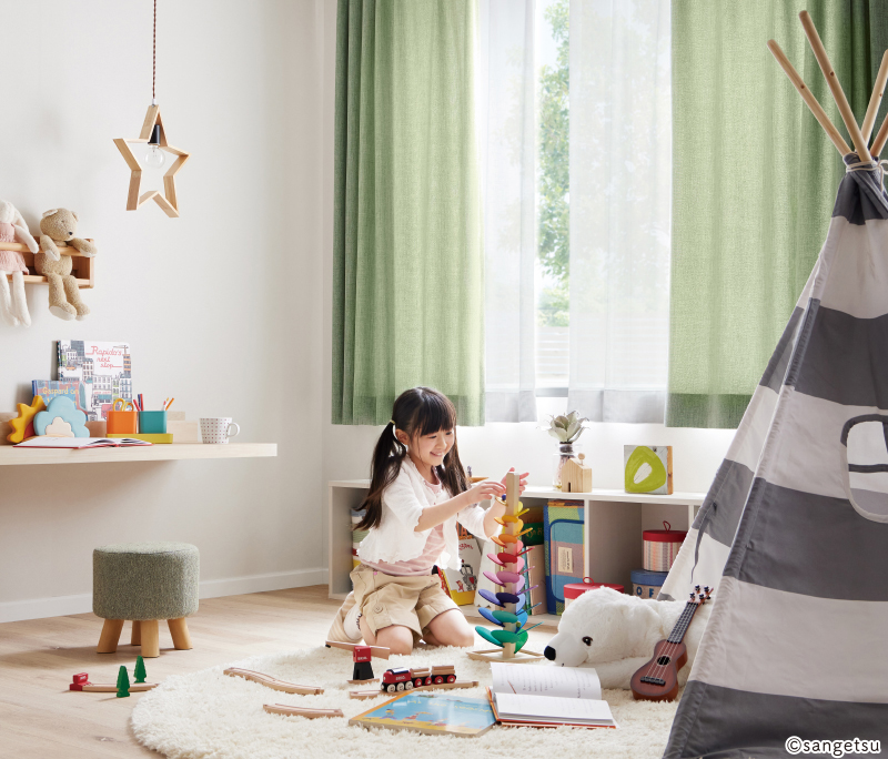 - 学童期中心:レースで昼の明るさを確保、勉強時間の眩しさはドレープで調整