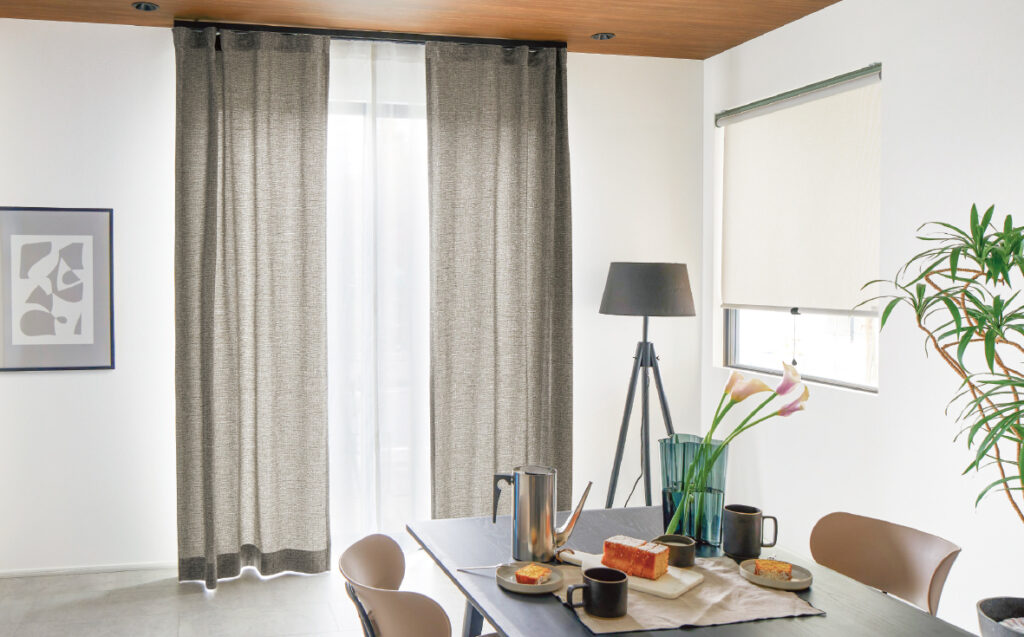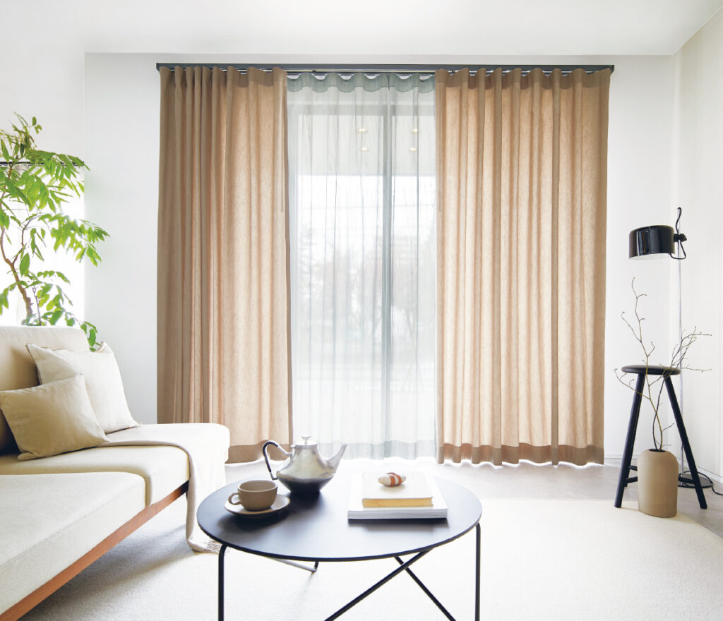ドレープカーテンは、光や視線をしっかり遮る役割を持つほか、色や柄によってお部屋の印象を決める“主役”のアイテムです。遮光・遮熱などの機能付き生地を選べば、快適さもぐっとアップします。