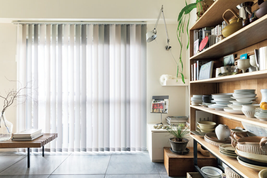 バーチカルブラインド(縦型ブラインド)は、縦長のスラット(帯状の生地)を回転・スライドさせて光や視線をコントロールするアイテムです。
